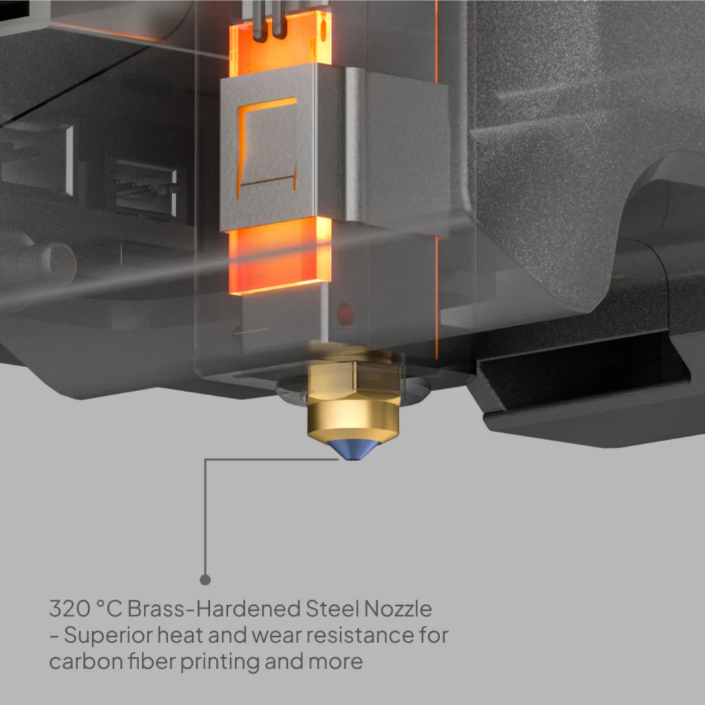 > Supported filament: Carbon/Glass Fiber Reinforced filaments, PLA, PETG, ABS, ASA, TPU, PET, PC, PA