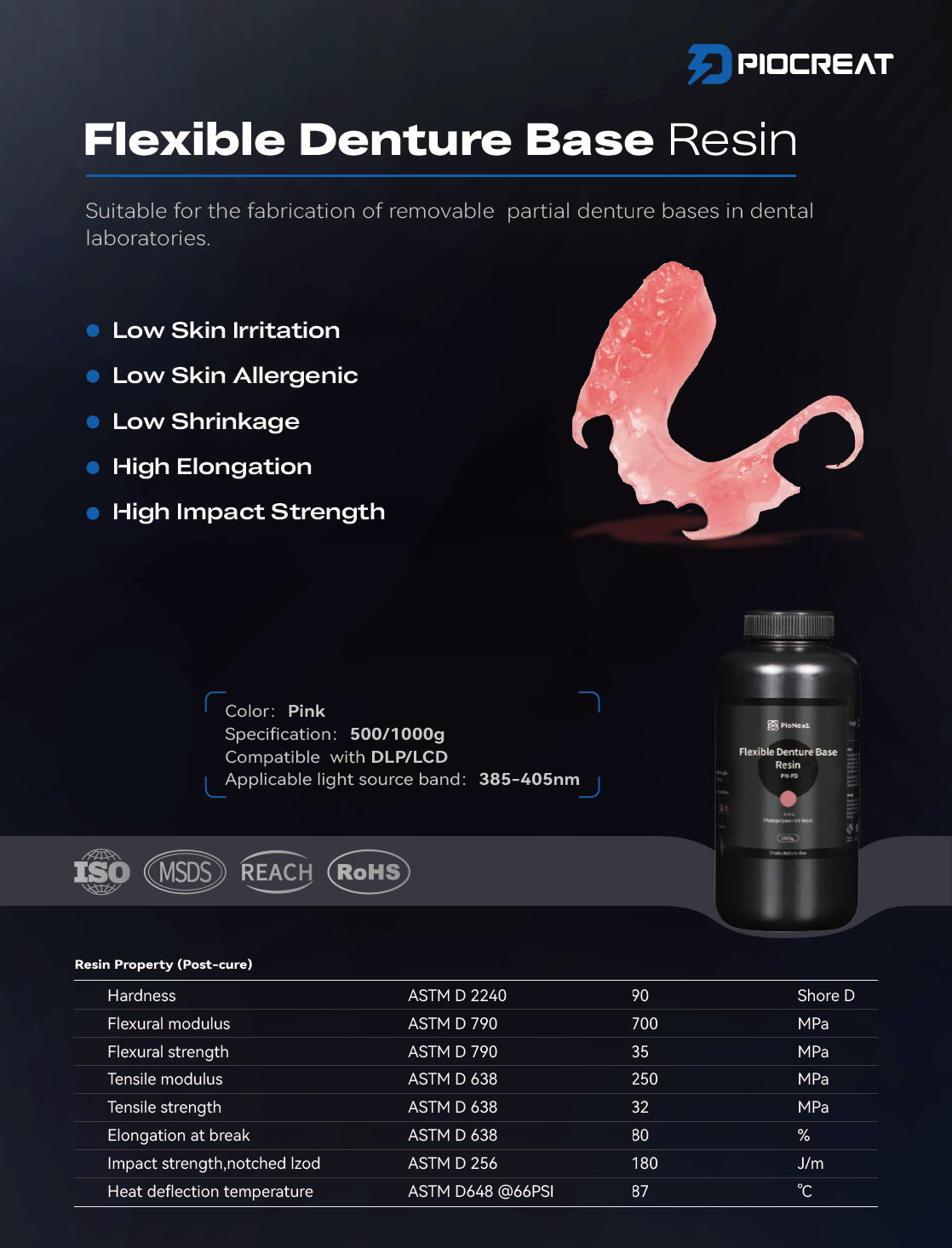 PioNext 500g Flexible Denture Base 3D printer resin biocompatible for 3D printing